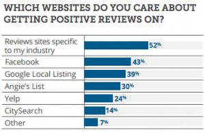 However, the report shows that 52% of business owners do think reviews from websites that are specific to their industry are important. The chart below shows which websites the respondents care most about getting positive reviews on.