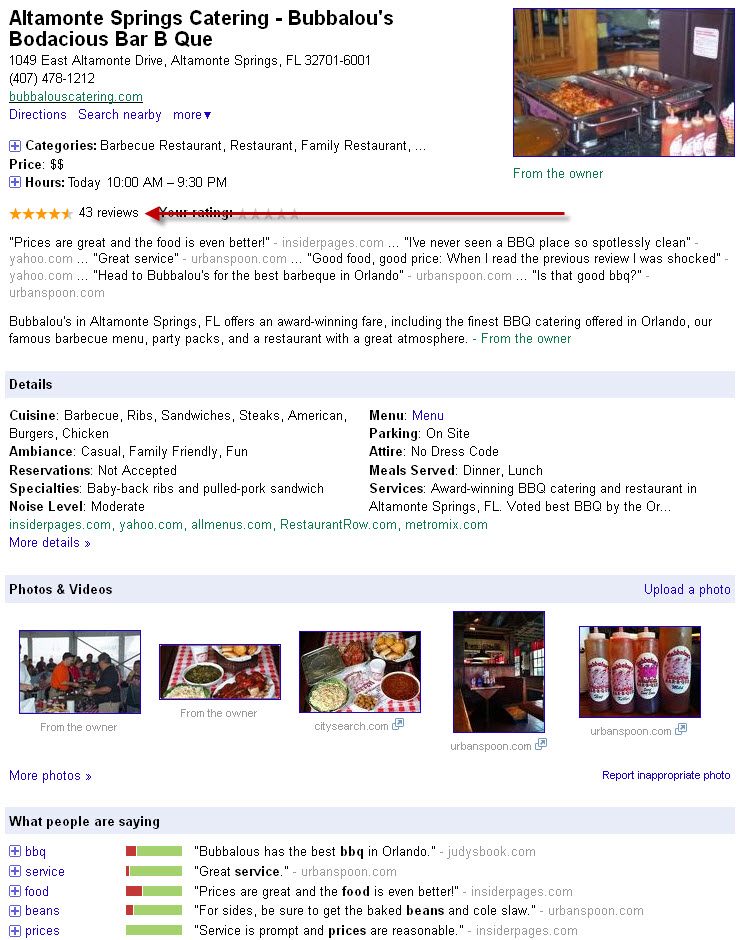 There are also many outside factors that affect your Place page, such as Internet Yellow Pages and reviews. Understanding how those help or hurt your Local Listing is very important. In fact, I’ve seen many Place pages that have a tremendously negative impact on businesses due to the negative reviews that show up on that Place page. It is vital to your business to understand how to attract positive reviews and handle negative reviews.